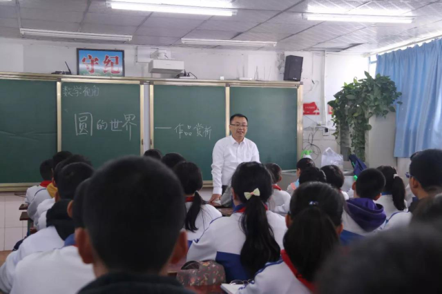 这节别开生面的数学课《“圆的世界”作品赏析》就是工作室刘久钰老师带给老师们的一场数学课堂盛宴。在刘老师的组织和指导下,同学们饶有兴趣地从“数学技能”、“数学文化”、“数学探究”、“赏析寄语”四个板块欣赏着作品,课堂上不时传来同学们的欢声笑语……