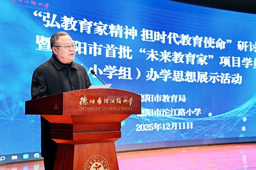 为深入学习贯彻党的二十大和二十届二中、三中、四中全会,全国教育大会精神,落实中共中央、国务院《关于全面深化新时代教师队伍建设改革的意见》《关于深化教育教学改革全面提高义务教育质量的意见》,按照《教育强国建设规划纲要(2024-2035年)》战略部署,准确把握基础教育高质量发展面临的新形势新任务,北京师范大学校长培训学院联合德阳市教育局于2025年12月11日举办“弘教育家精神,担时代教育使命”研讨会暨德阳市首批“未来教育家”项目学员(小学组)办学思想汇报展示活动。