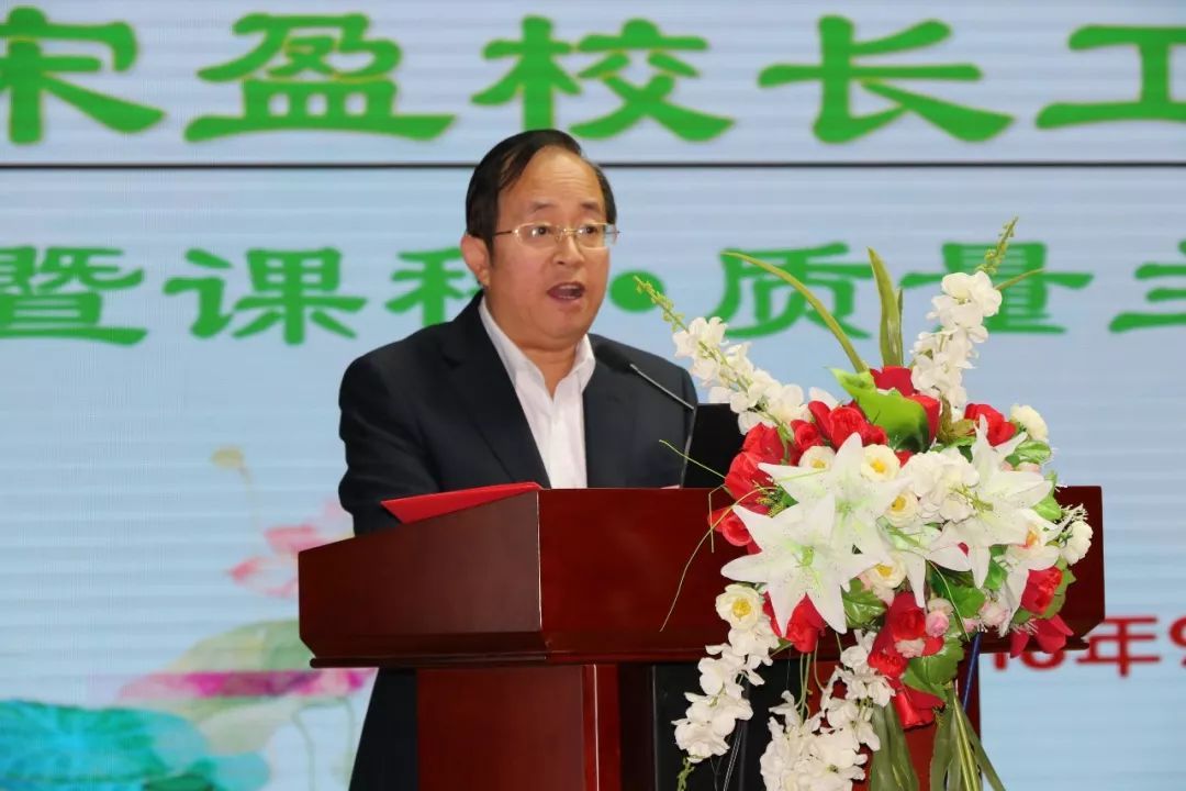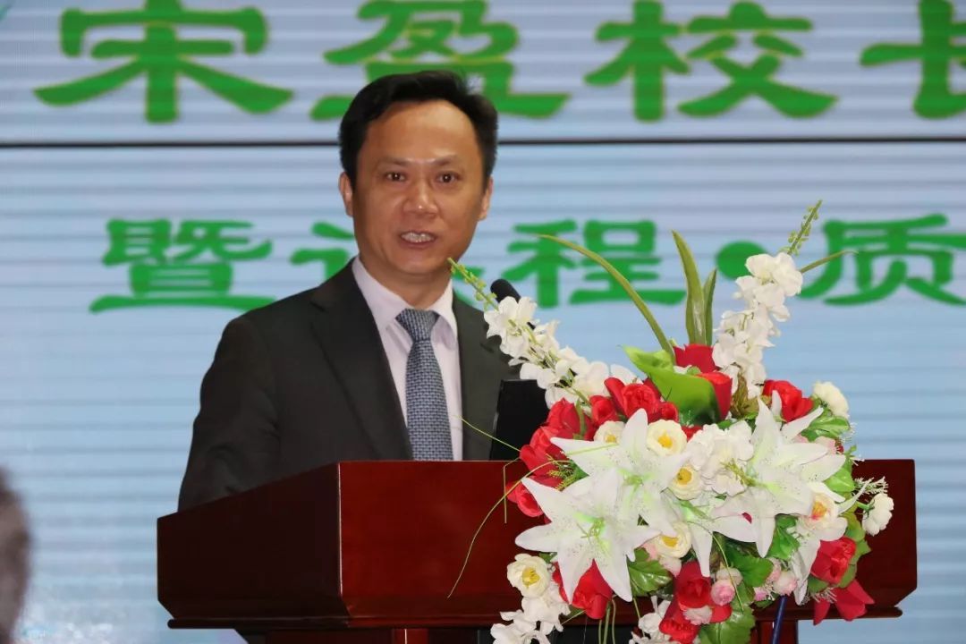 陕西省教育厅教师工作处处长罗侃淳讲话,向宋盈校长工作室挂牌成立表示热烈的祝贺!向北塘实验小学建校90周年校庆表示祝贺!他殷切希望名校长、名师要坚持做一辈子“好老师”;应当有科学的教育思想;应当做有追求的知识分子;应当有责任担当,做好新时代教育的楷模。