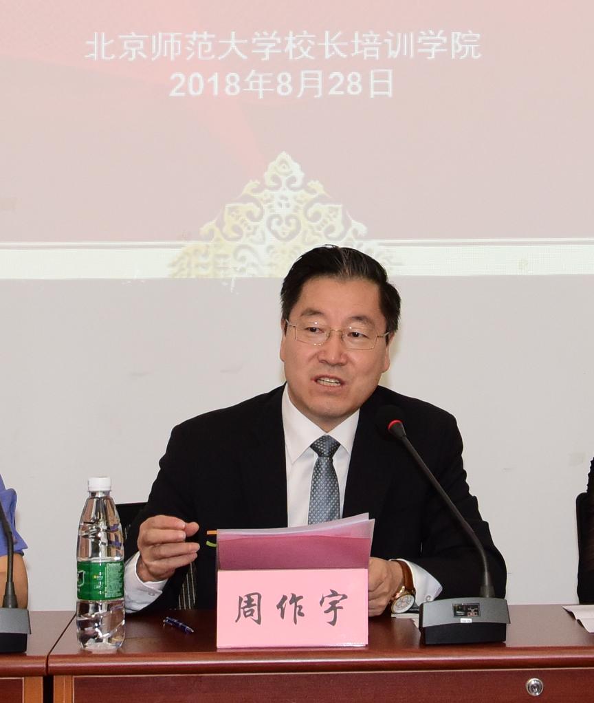 周作宇副校长代表北京师范大学向遴选参加本培训项目的教师们表示祝贺和欢迎,介绍了北京师范大学的校史、发展现状与未来规划,并从师者的情怀出发,勉励培训学员以“学为人师、行为世范”的北京师范大学校训为标准,珍惜学习机会,潜心钻研,不忘初心,牢记使命,与港澳教师一起砥砺前行,在中国教育史上留下浓墨重彩的一页。